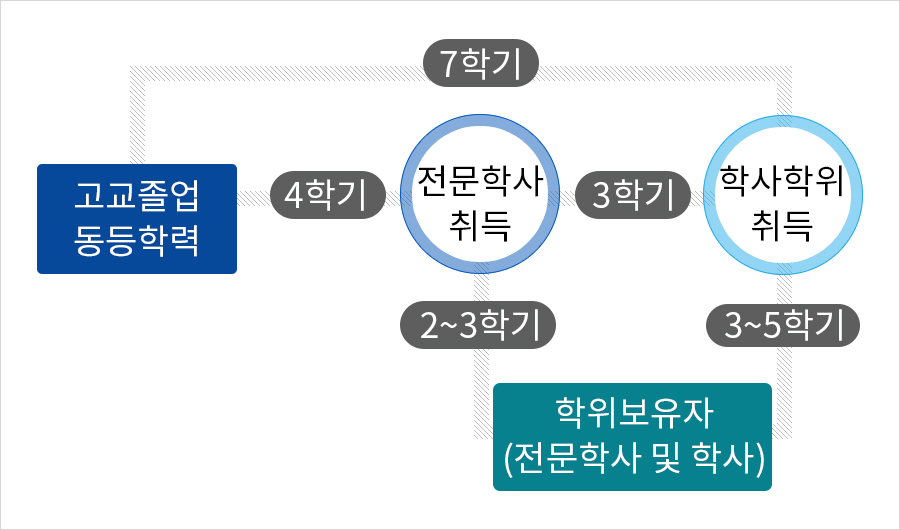 교육의 기회는 나이, 직업, 환경과 관계없이 누구나 공평한 기회를 제공받을 수 있어야 한다는 주1일과정의 설립취지에 따라 개인의 상황과 적성, 성향을 고려한 1:1 맞춤형 학습설계를 제공하여 최단기간에 학위를 취득하고 명문대학원에 진학할 수 있는 교육과정입니다.